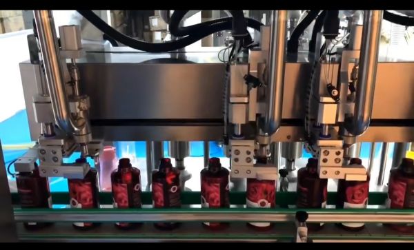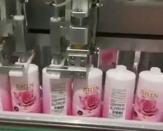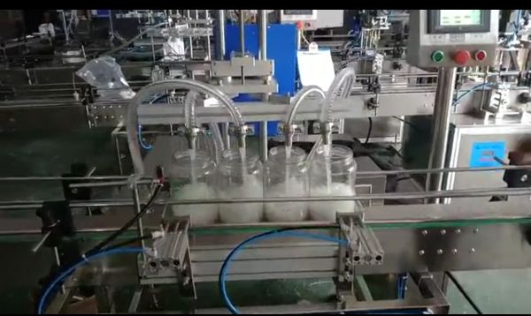 4头电动液体灌装拍盖锁盖喷码线