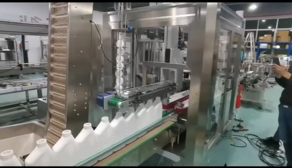 四头跟随式灌装#单头跟随式上盖锁盖#双面贴标-洗衣液