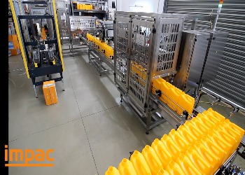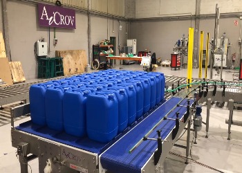 AiCROV – EL2-E – Automatic Jerrycan Filling Machine with Robot Palletizer and Wrapping Machine