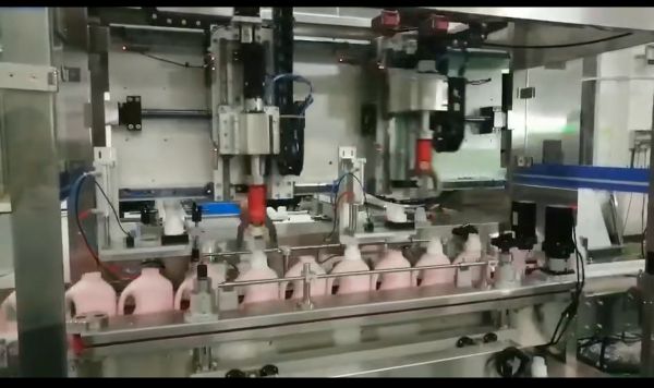 4头电动液体灌装转盘扎盖线