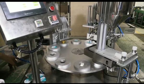转盘式灌装片膜封杯机