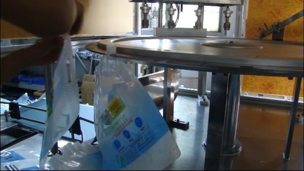 吸嘴袋转盘式灌装锁盖线